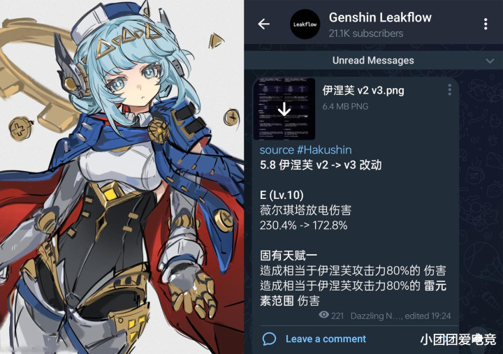 值得注意的是,5.8新角色伊涅芙的v3改动消息来了,薇尔琪塔放电伤害由230.4%降低至172.8%,虽说大头一直是天赋给的月感电,但没想到这次居然还把直伤削了,不过即使削了也是新时代雷后台了。